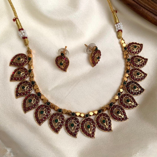 Gold-Polish Tear-Drop Designed Floral Necklace 1273