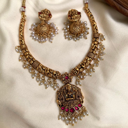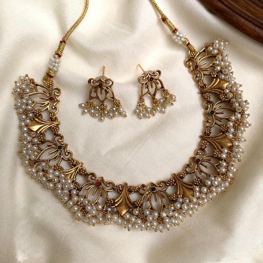 Gold-Toned Lakshmi Floral Pearl Necklace 1382