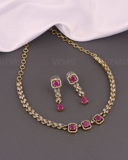 Gold Polish Minimal Heart Shaped AD Invisible Necklace 1173