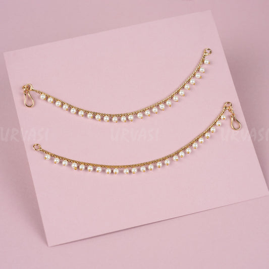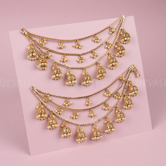 Gold-Toned Jhumka Pearl Ear Chain EC 18