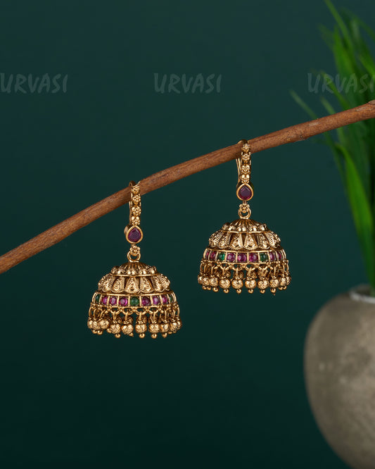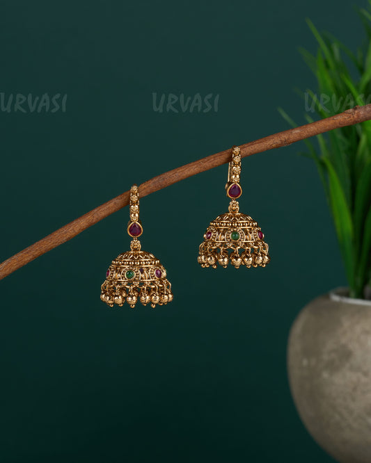 Gold-Toned Hanging Jhumka Earrings ER 132