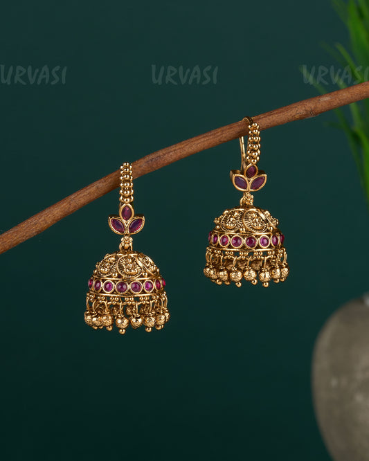 Premium Gold-Toned Lakshmi Floral Jhumka Earrings ER 85