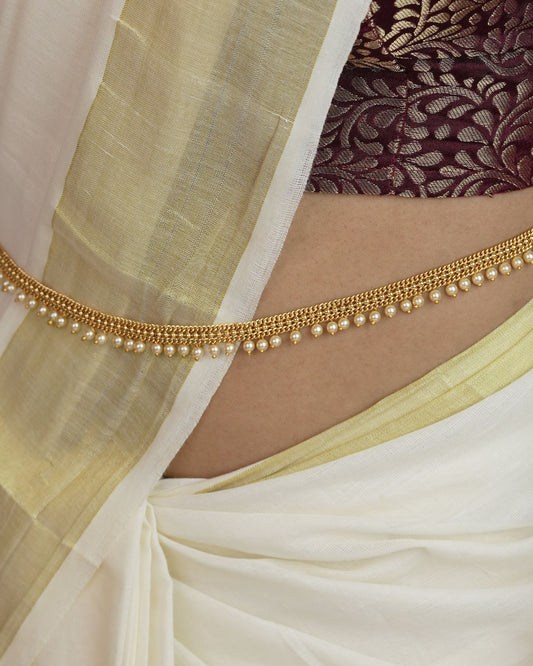 Gold-Toned White pearl Hanging Hip Chain HC 70