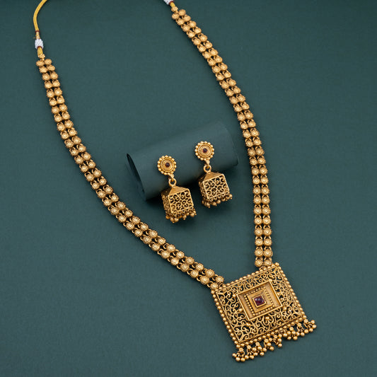 Premium Antique Lakshmi Temple Golden Bead Long Necklace 663