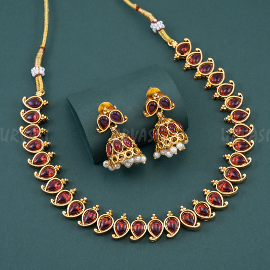 Traditional Ruby-Green Kemp Stone Guttapusalu Necklace 586