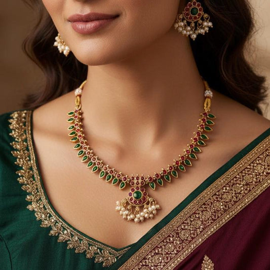 Amrita Kalash Gold Polish Emerald Necklace 698