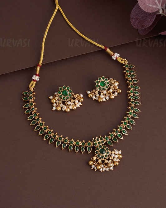 Aalma Gold-Polish Stone Pearl Necklace 1017
