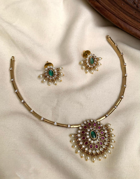 Gold Polish Minimal Heart Shaped AD Invisible Necklace 1173