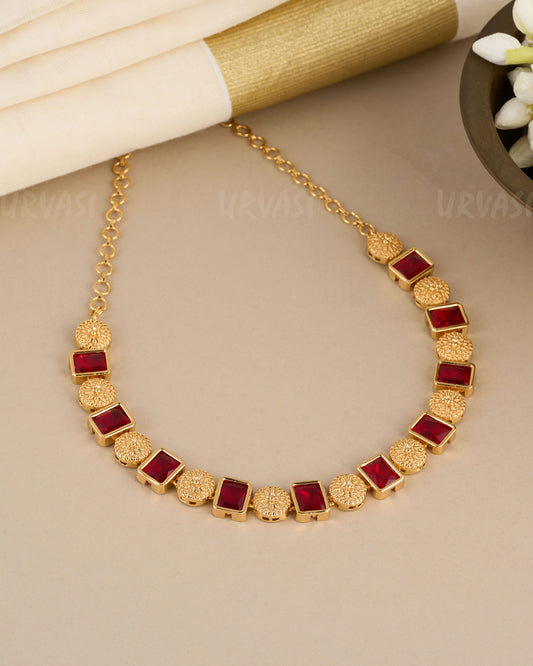 Gold Polish Diamond Look Star Flower AD Necklace 422