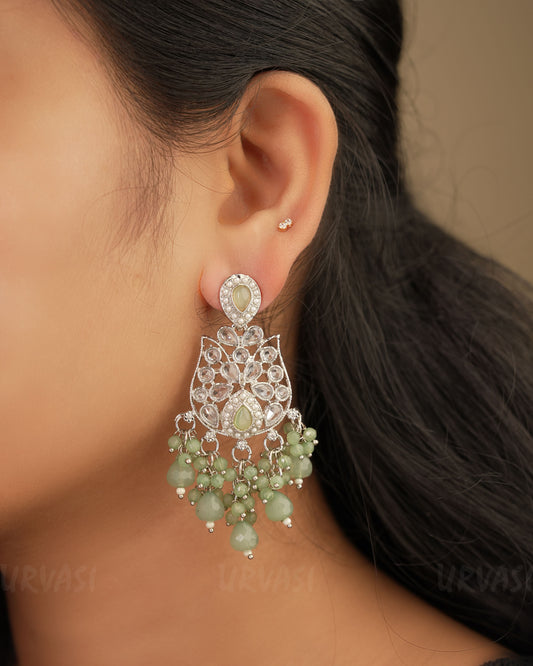 Rhodium Polish Van Cleef Trendy Imported AD Earrings ER 276