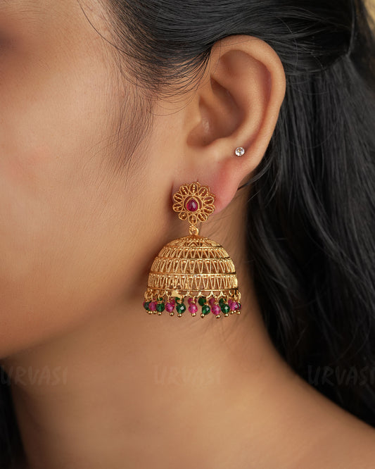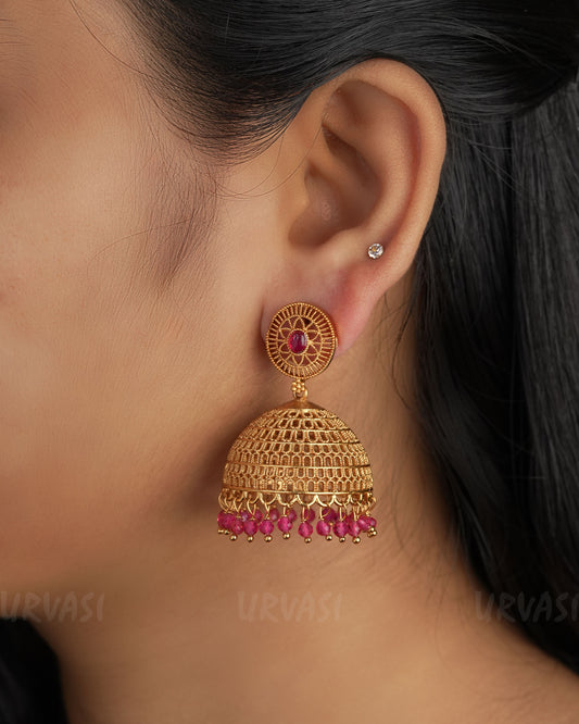 Gold-Toned Ruby Jhumka Earrings ER 279