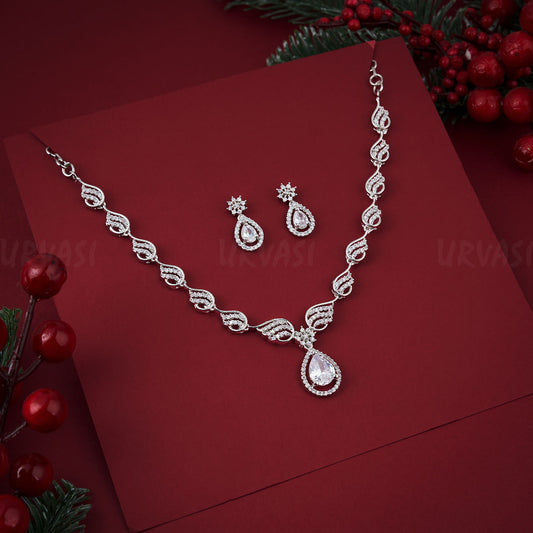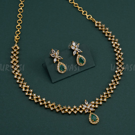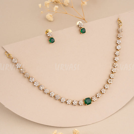 Gold Polish Diamond Look Star Flower AD Necklace 422