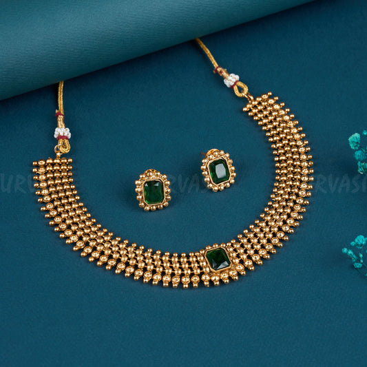 Traditional Ruby-Green Kemp Stone Guttapusalu Necklace 586
