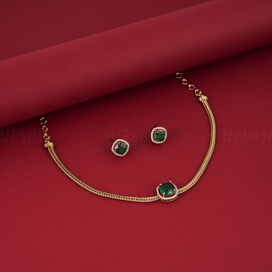 Gold-Toned Solitaire AD Stone Choker Necklace 470