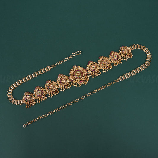 Gold-Toned Lakshmi and Peacock Motif Mango Necklace 1053