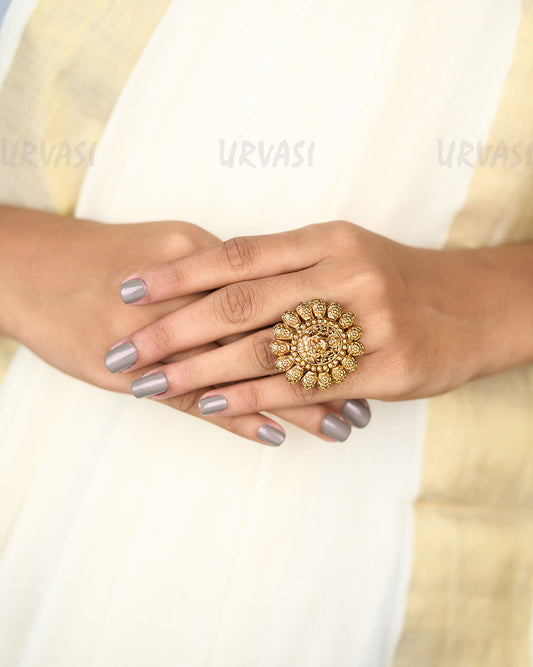 Gold-Toned Lakshmi Idol Finger Ring FR 17