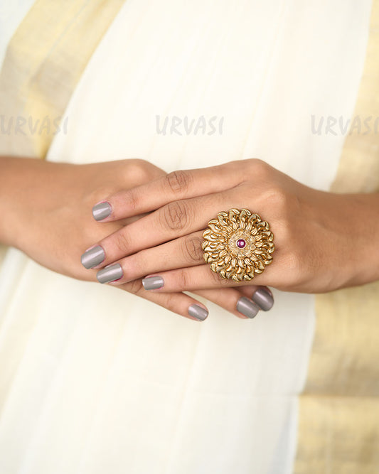 Gold-Toned Floral Ruby Stone Finger Ring FR 18