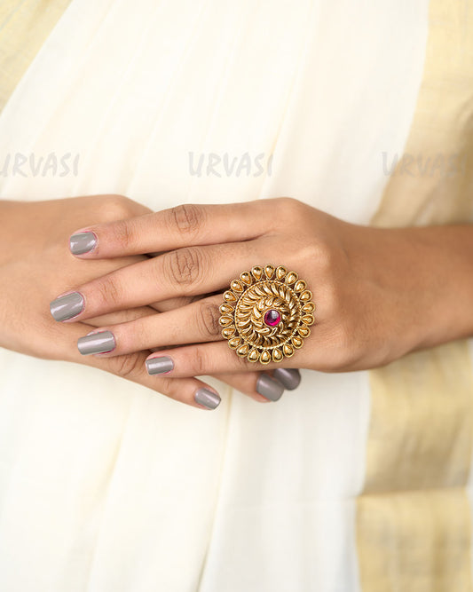 Gold-Toned Lakshmi Peacock Motif Finger Ring FR 14