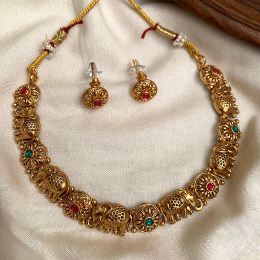 Gold-Polish Floral Elephant Designed Necklace 1423