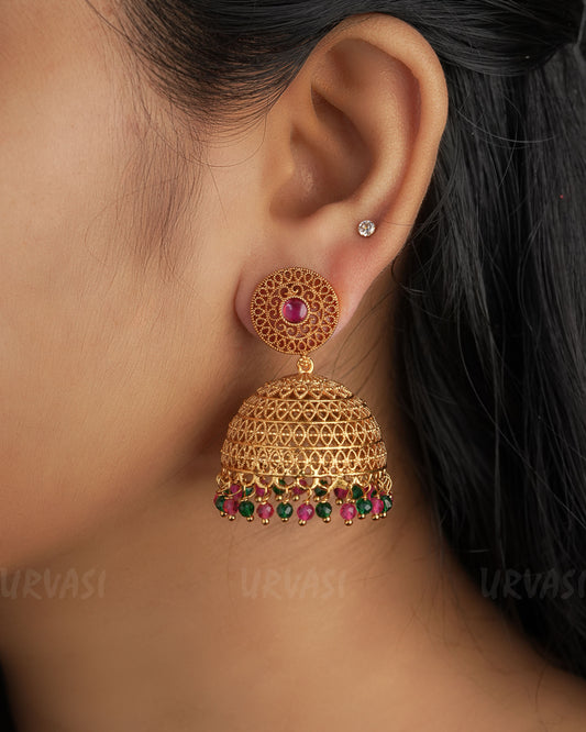 Gold-Toned Ruby Green Jhumka Earrings ER 272