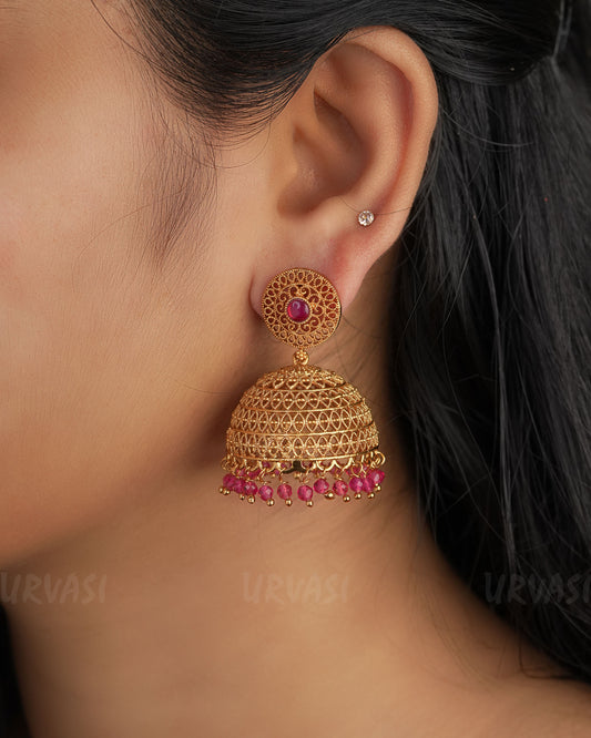 Gold-Toned Ruby Jhumka Earrings ER 268