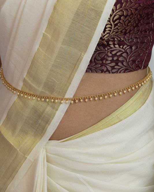 Gold-Toned White pearl Hanging Hip Chain HC 69