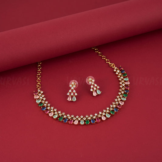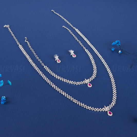 Premium Rhodium Polish AD Stone Bridal Set Necklace 431
