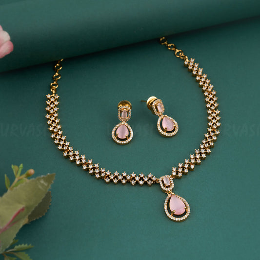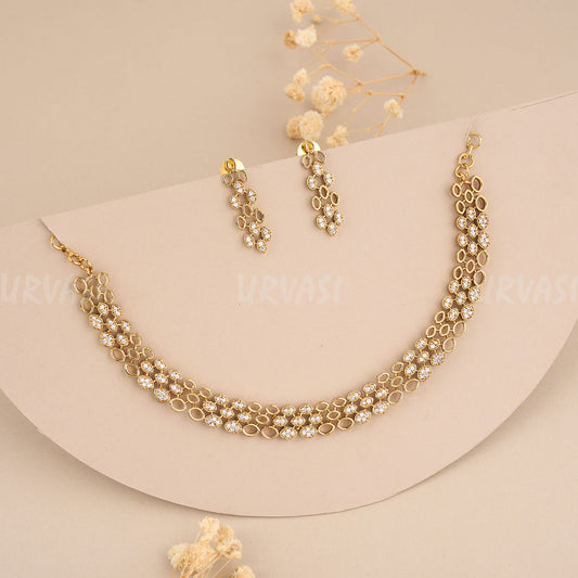 Gold Polish AD Stone Necklace 401