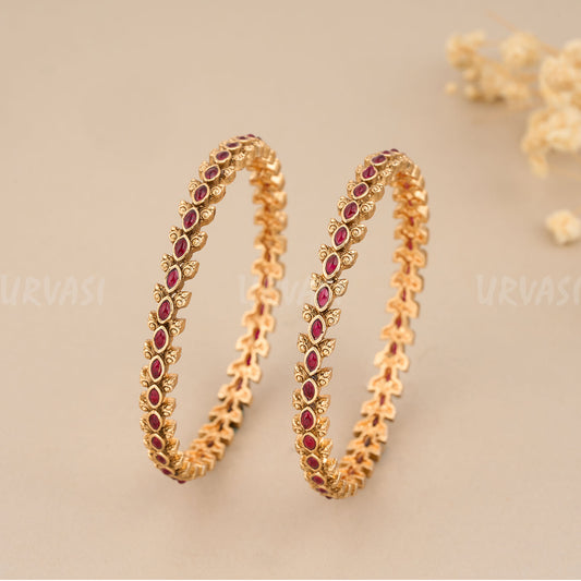 Gold-Toned leaf Motifs Bangles BA 50 {Set of 2}