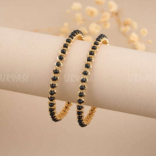 Gold-Tone Pearl-like Beaded Bangles BA 52 {Set of 2}