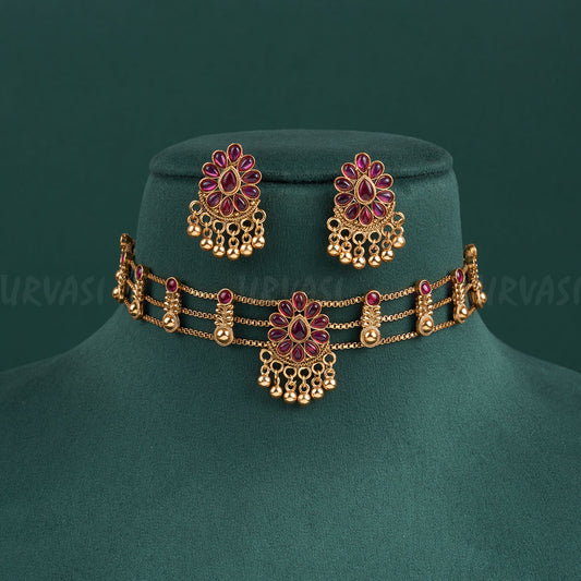 Gold-Toned floral designed Choker Necklace 398