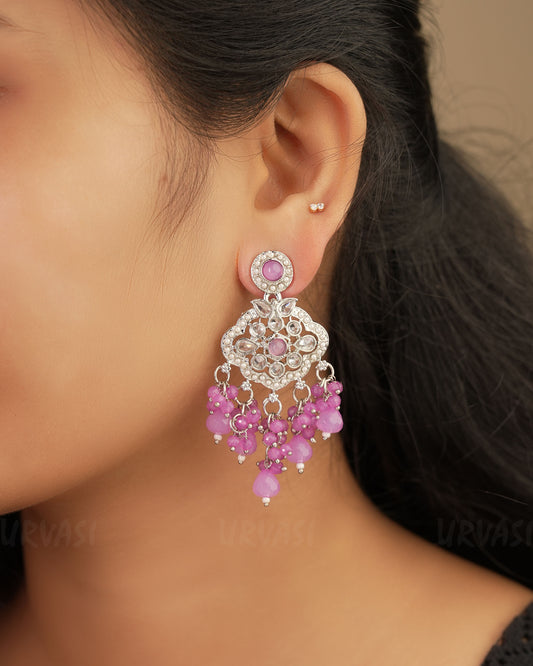 Rhodium Polish Reverse AD and Pearl Dangle Earrings ER 159