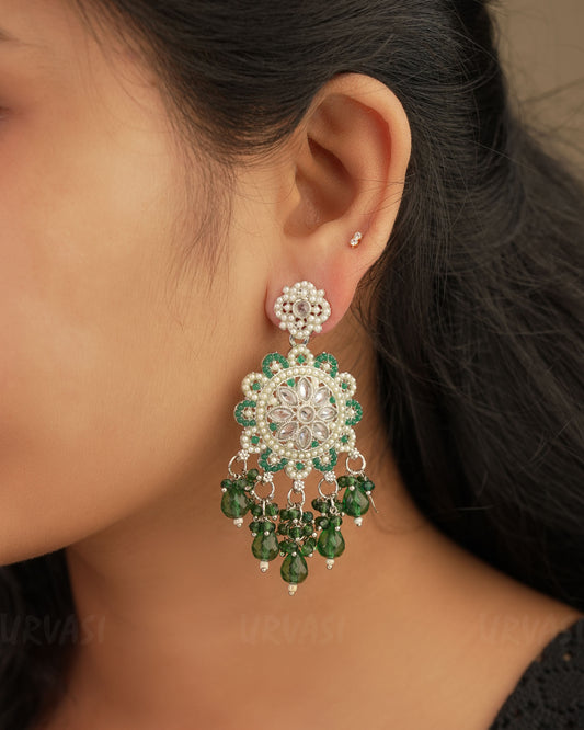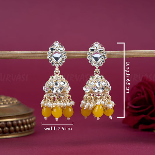 Rhodium Polish Reverse AD and Pearl Ghungroo Dangle Earrings ER 128