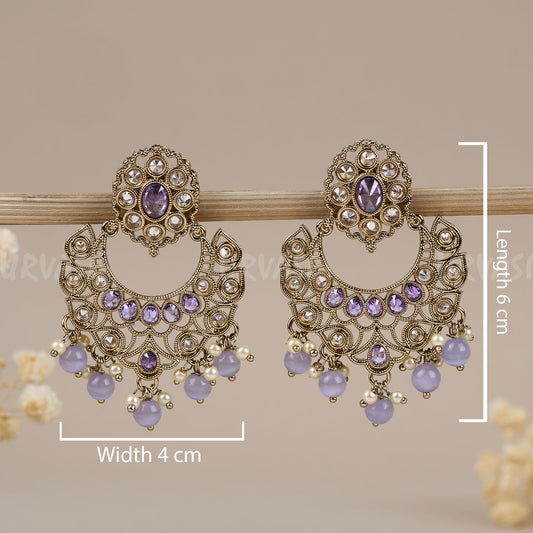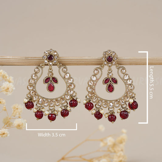 Gold-Polish Antique Floral Ruby Earrings ER 83