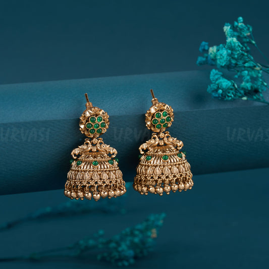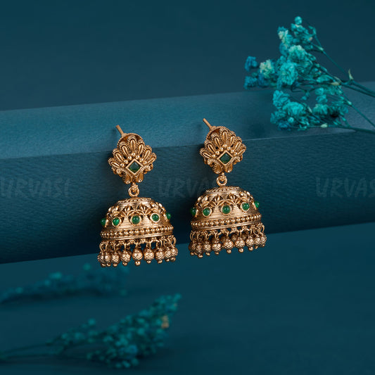 Gold-Polish Peacock Jhumkas Earrings ER 82