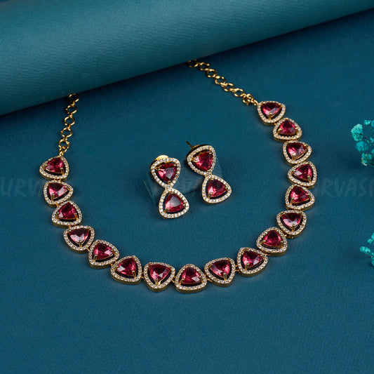 Mehendi Polish Floral Design AD Stone Necklace 330