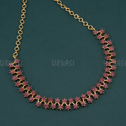 Gold-Toned Flower Designed Single Chain Necklace 092