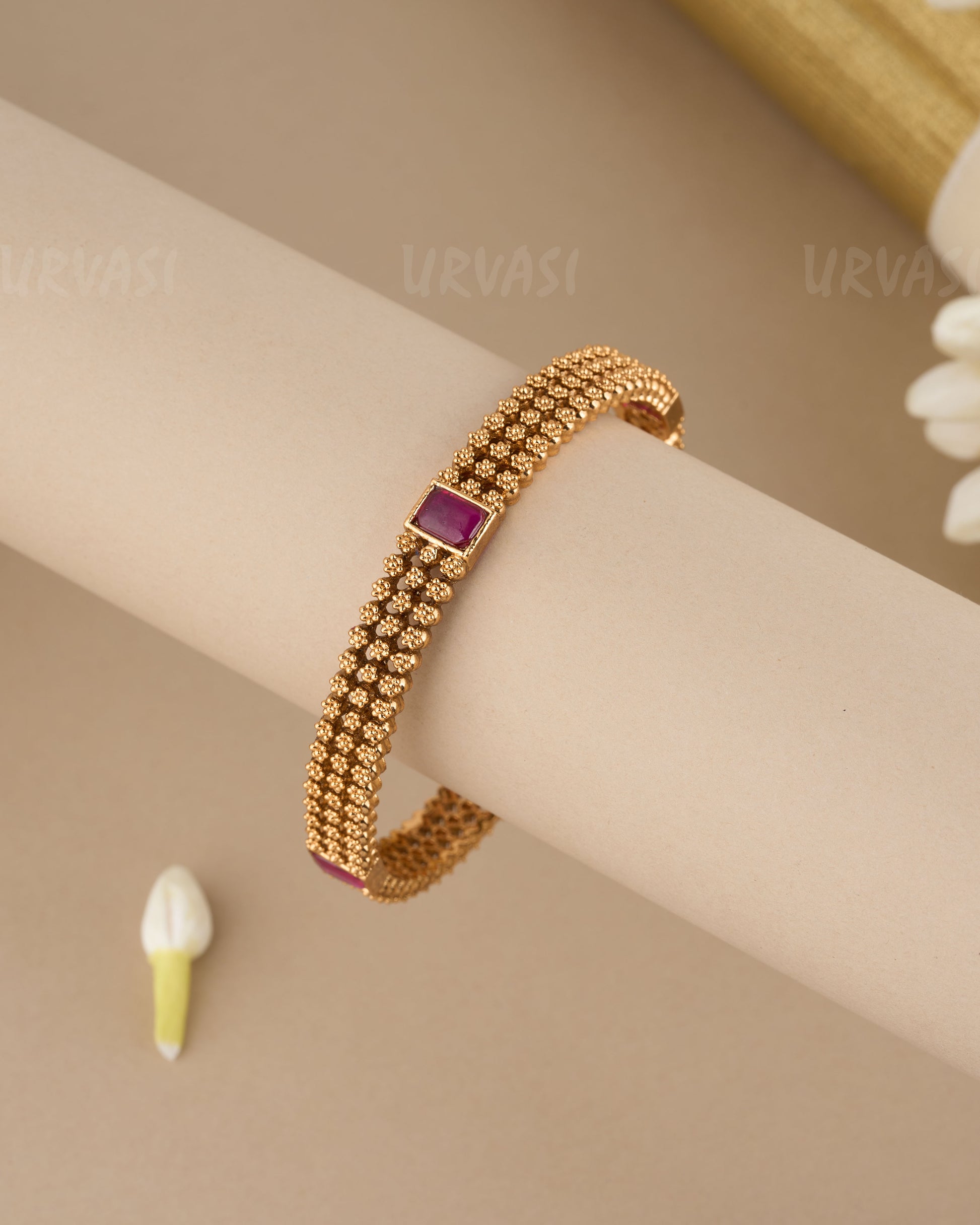 Gold Polished Floral Ruby Bangles BA 265