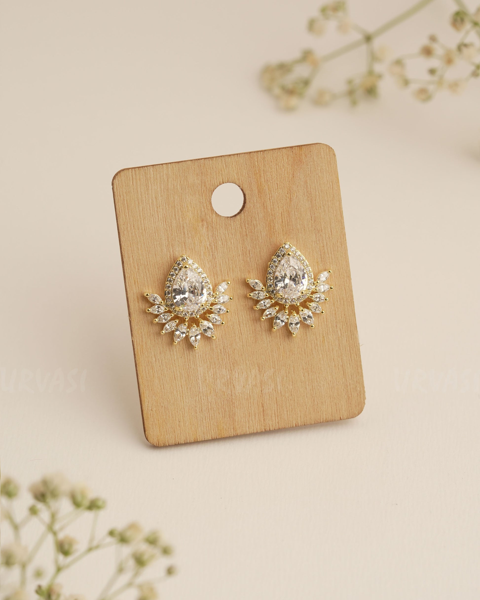 Rhodium Polish Tear Drop Trendy Imported AD Earrings ER 288
