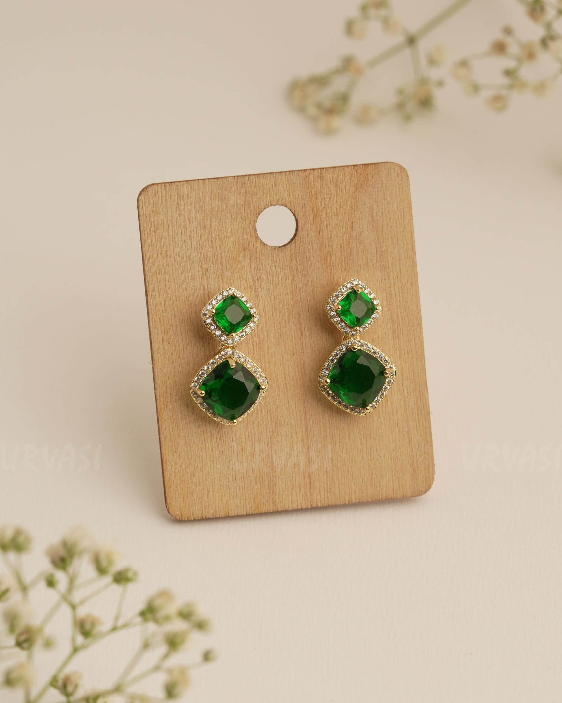 Gold Polish Green AD Stone Imported Earrings ER 296