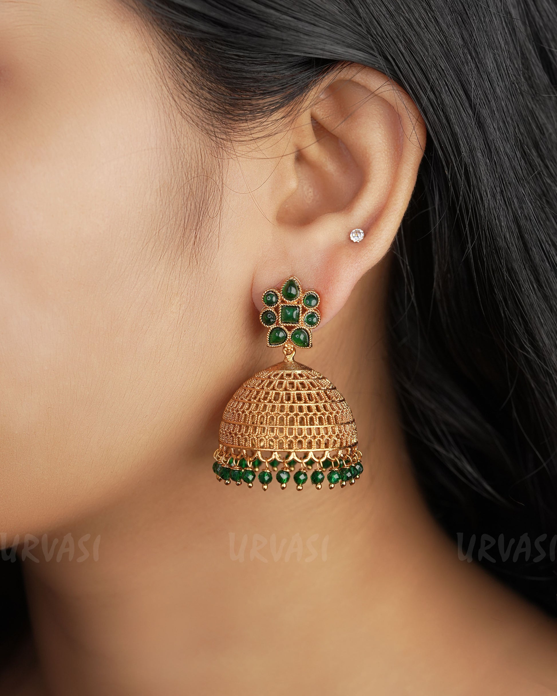 Add a touch of timeless elegance to your ethnic look with these exquisite Gold-Toned Floral Jhumka Earrings. Designed with intricate floral motifs and a graceful dome-shaped jhumka, this pair captures the essence of traditional Indian craftsmanship while offering a modern, versatile appeal.