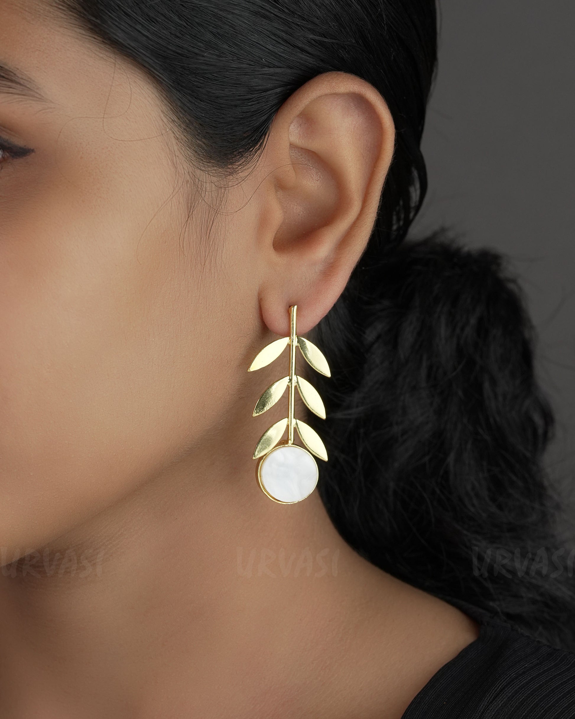 Glossy Gold-Toned Parisha Leaf Designed Earrings ER 720