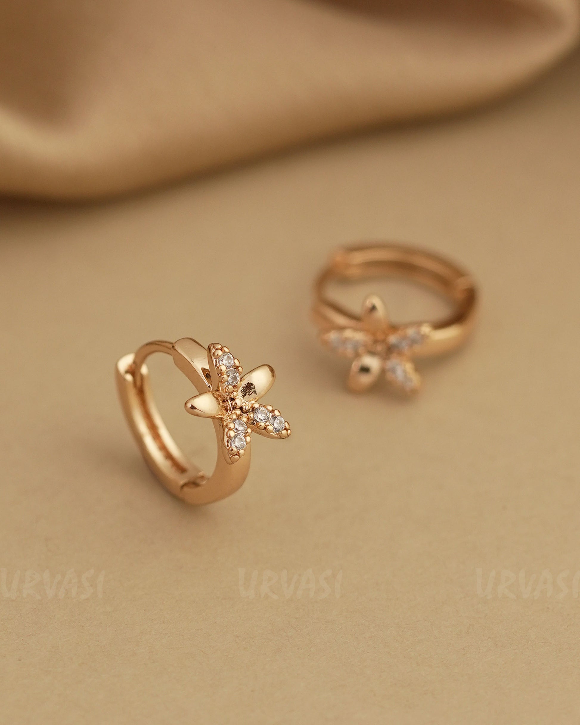 Gold Polish AD Floral Hoop Earrings ER 805