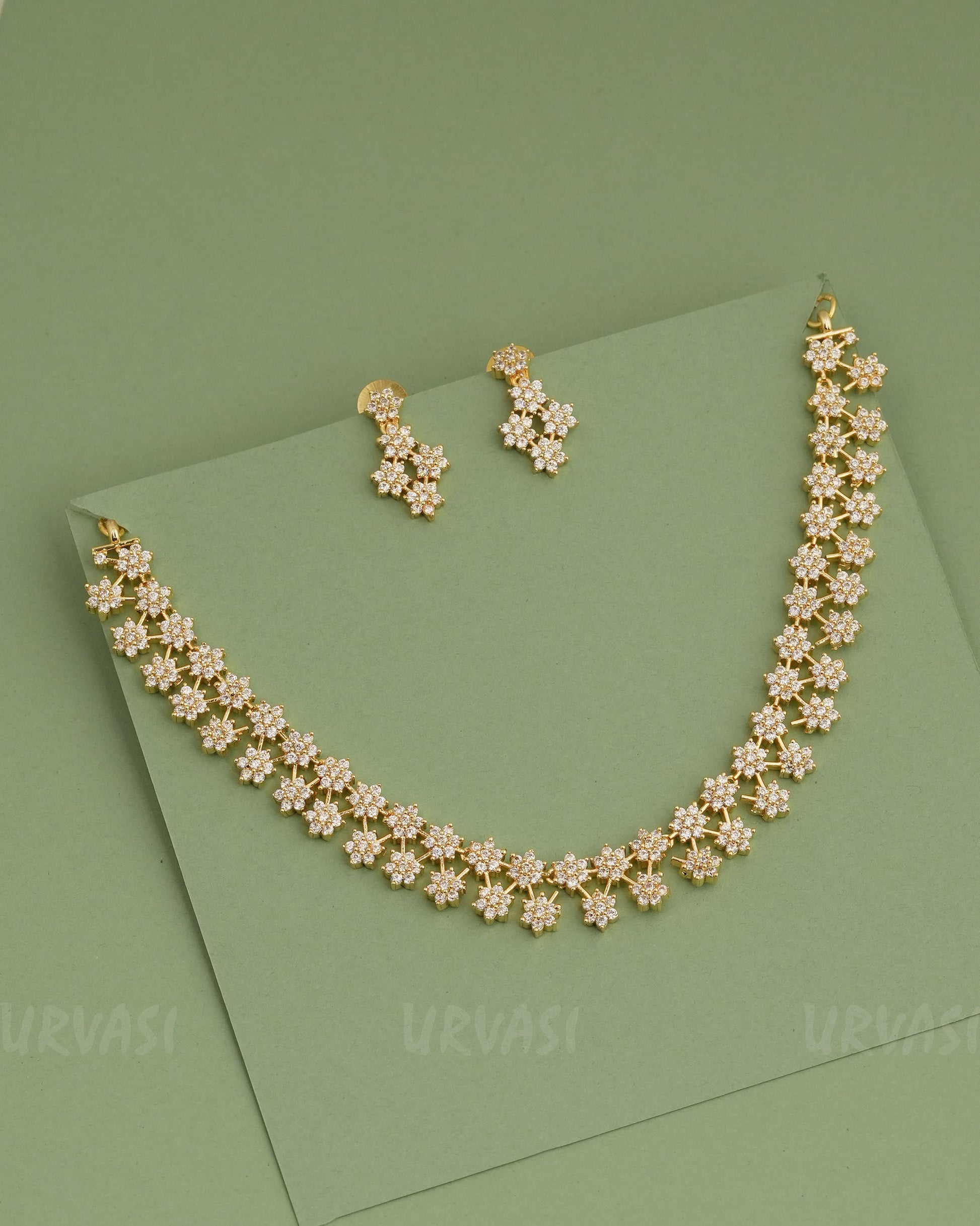 Gold-Polish Star-Designed AD Necklace 1276