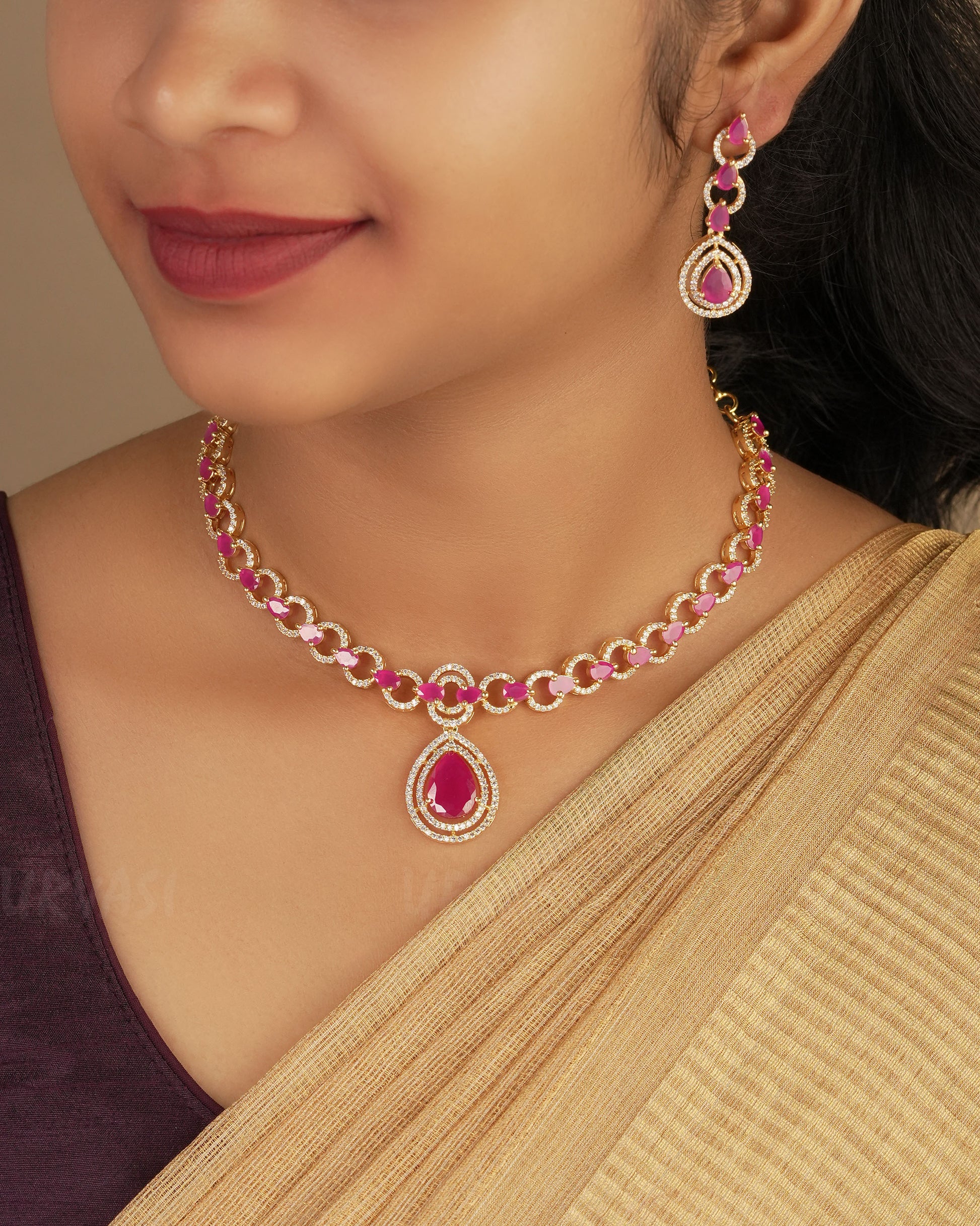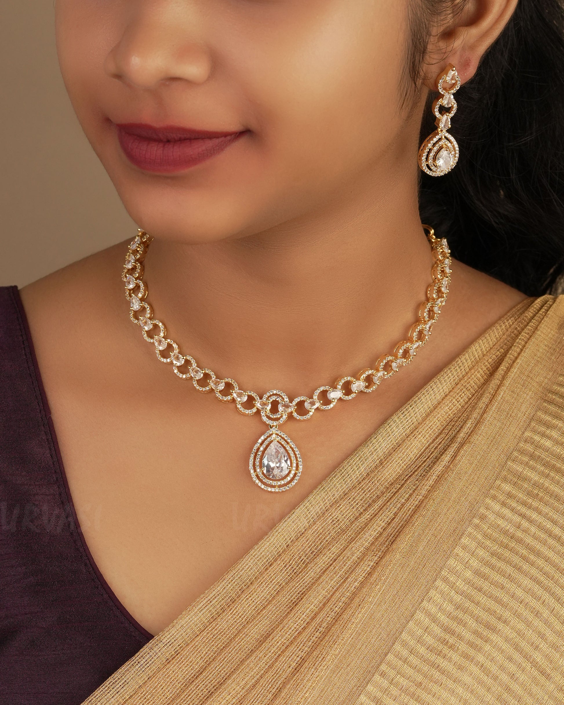 Designed to pair effortlessly with traditional, fusion, or contemporary attire, this tear-drop necklace brings sophistication and sparkle to your look. Whether worn as a statement centerpiece or layered with other jewelry, it’s a must-have addition to any collection.