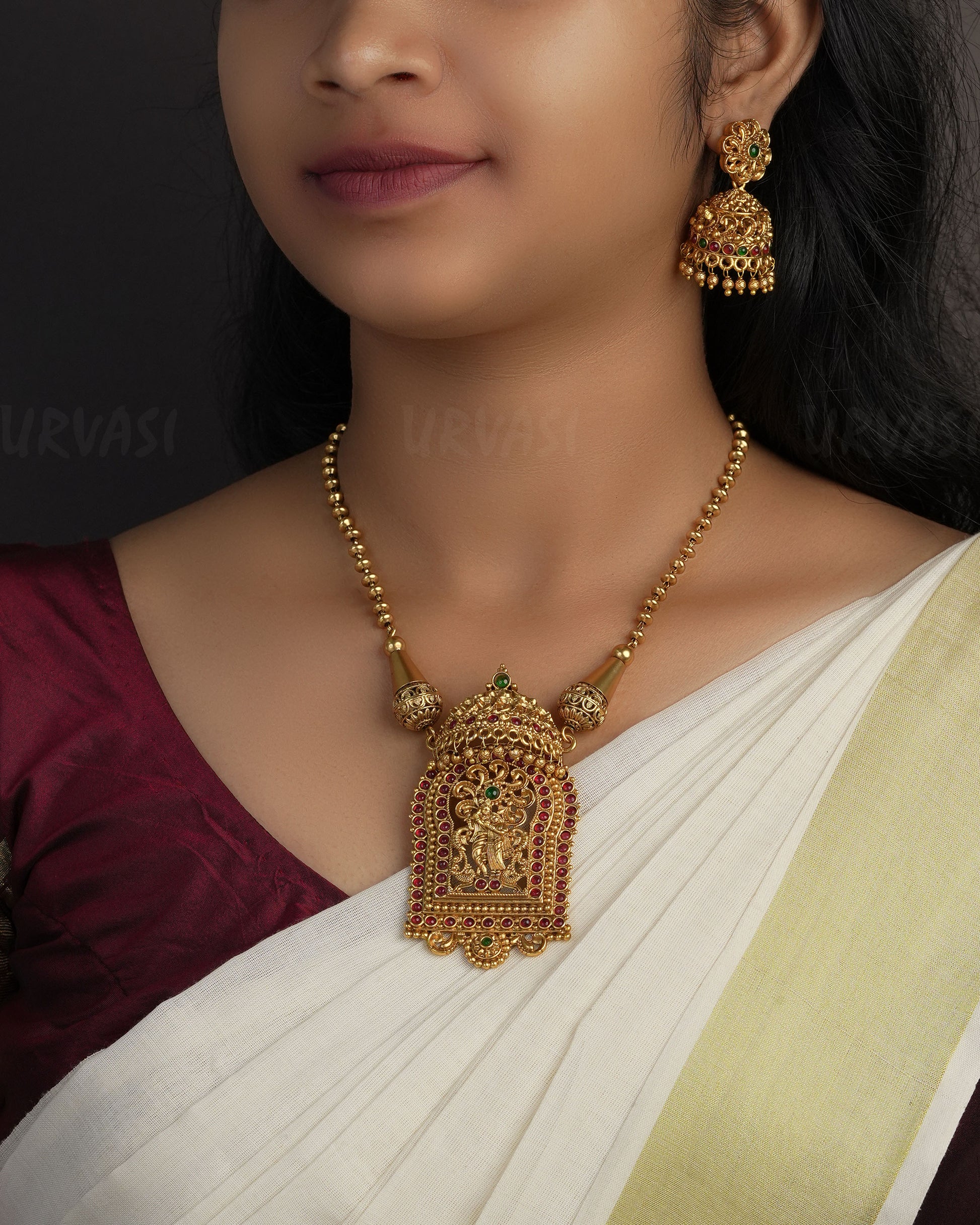 Lightweight yet statement-making, the Ashtami Floral Necklace is designed for the modern woman who loves to celebrate heritage with a touch of glamour. Pair it with matching earrings or bangles for a complete, graceful look.