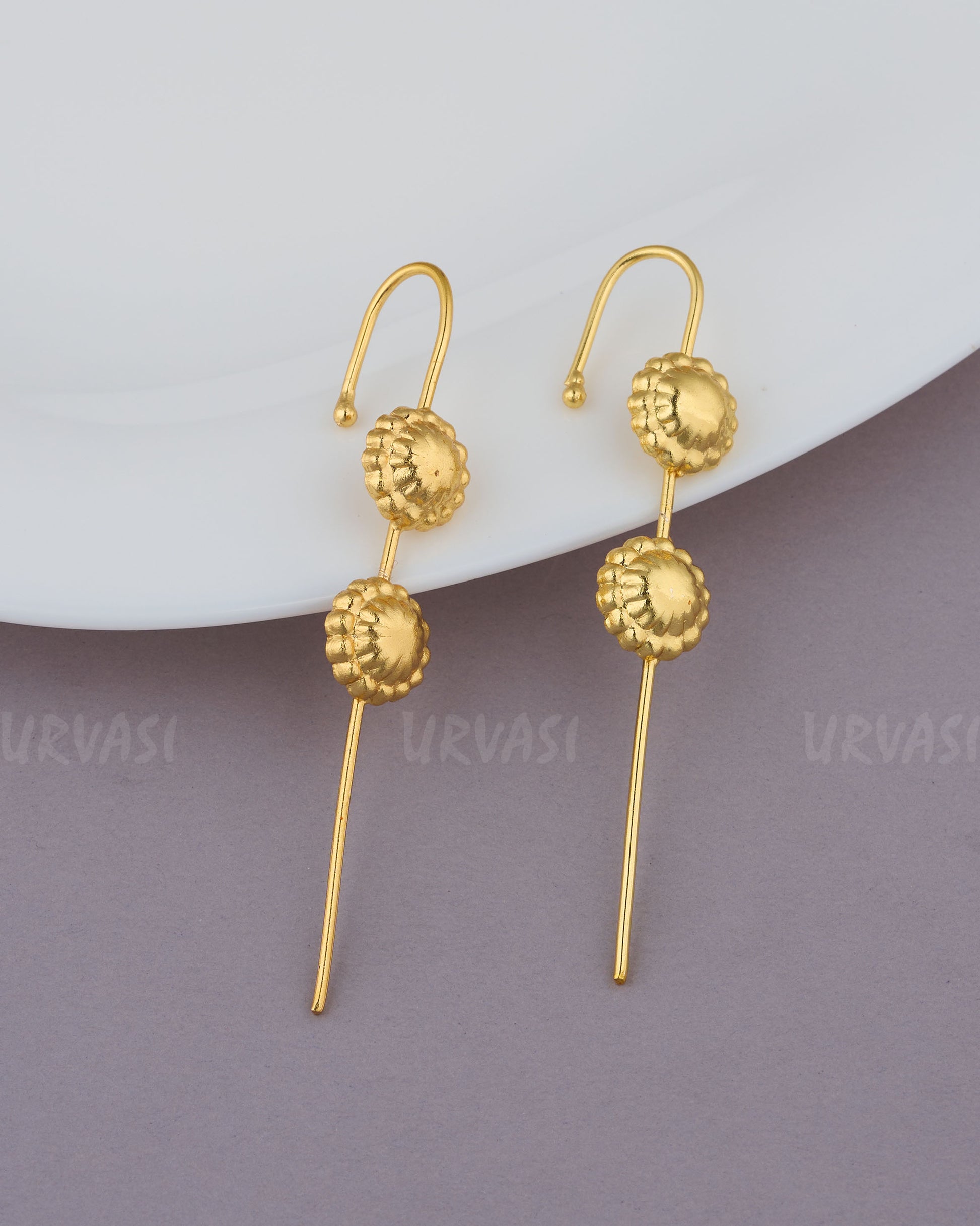Bring nature-inspired elegance to your look with this Gold-Toned Floral Statement EarCuff Earring. Featuring a beautifully sculpted floral design, this piece combines delicate charm with bold statement styling. The radiant gold-tone finish enhances the intricate petal details, while the ear cuff style creates a trendy layered look without the need for multiple piercings. Perfect for adding a touch of sophistication to both festive and modern outfits.
