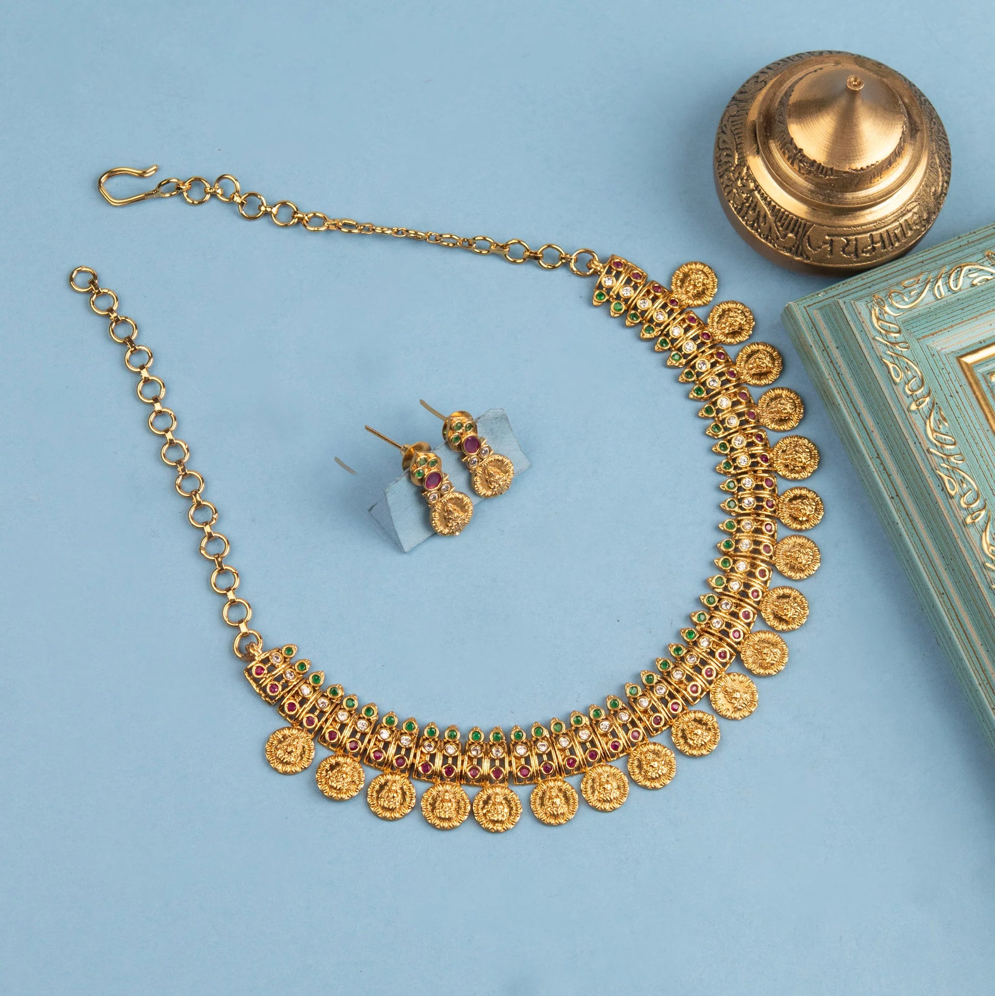 Perfect for festive occasions, temple visits, weddings, and cultural celebrations, this necklace is designed to stand out as a meaningful and sophisticated statement piece.