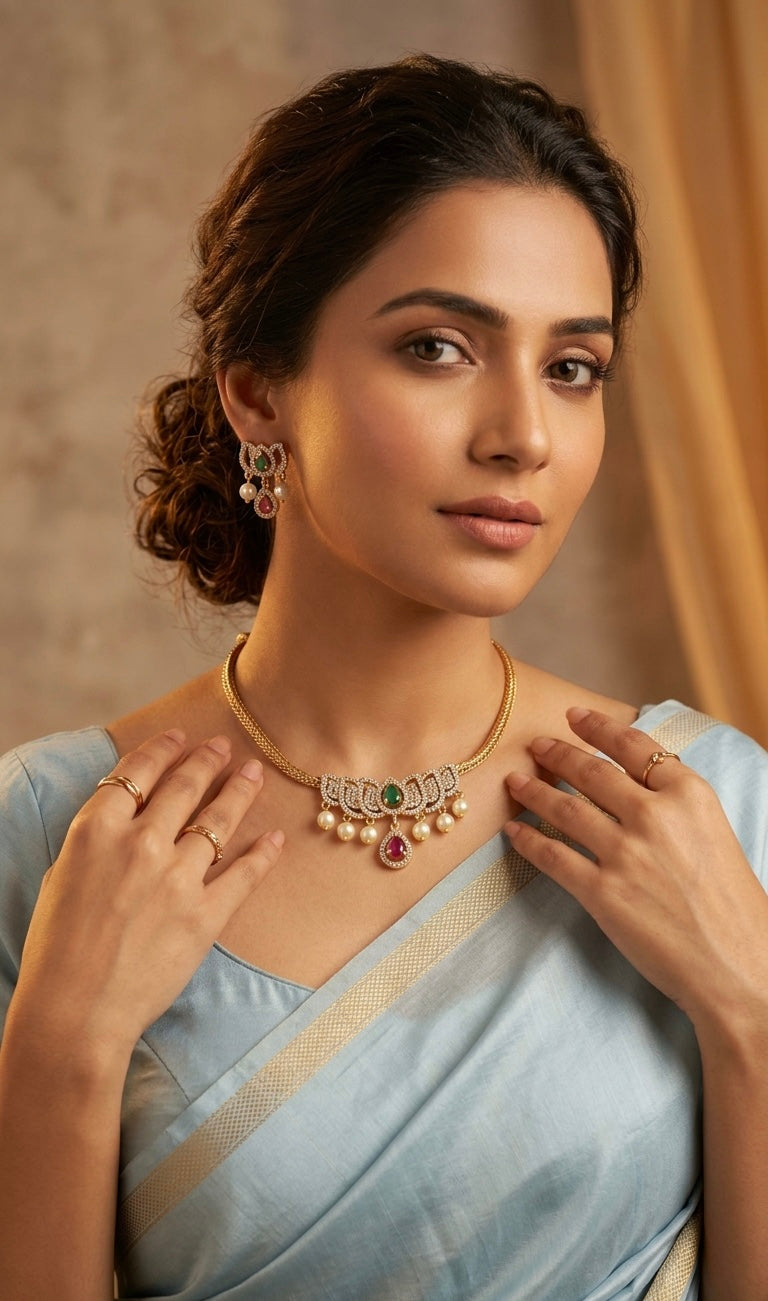 Whether styled with a saree, lehenga, gown, or festive ensemble, this necklace effortlessly enhances your look for weddings, receptions, festive celebrations, and special occasions.
