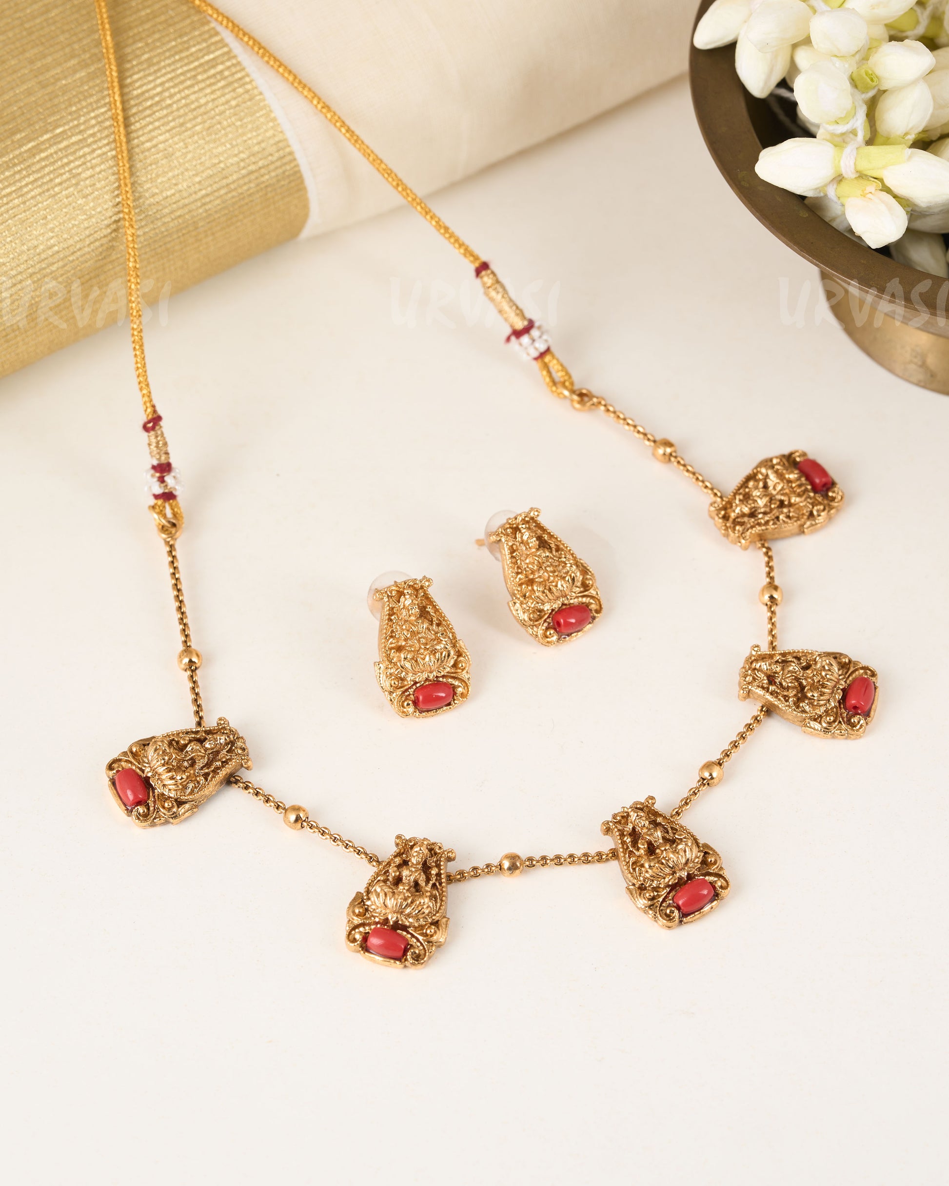 Embrace the mystique of tradition with the Nagas Charm Coral Necklace. Featuring intricate serpent (Nagas) motifs paired with vibrant coral beads, this necklace symbolizes protection, strength, and auspiciousness. Perfect for festive occasions and ethnic celebrations, it adds a bold yet elegant statement to your jewelry collection. A captivating blend of heritage and style that honors age-old symbolism.